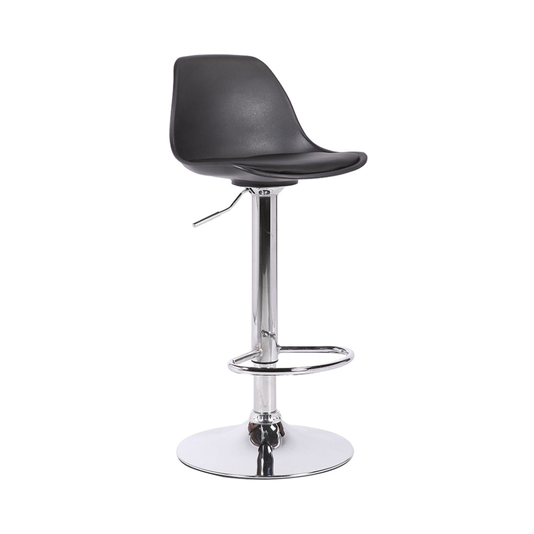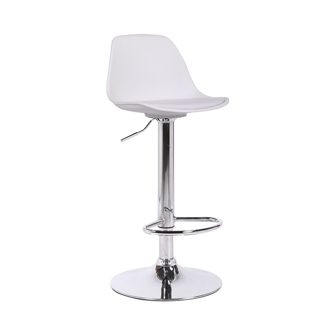 Banqueta giratória com assento e encosto em polipropileno, almofada em PU e base aço cromado, com ajuste de altura à gás.