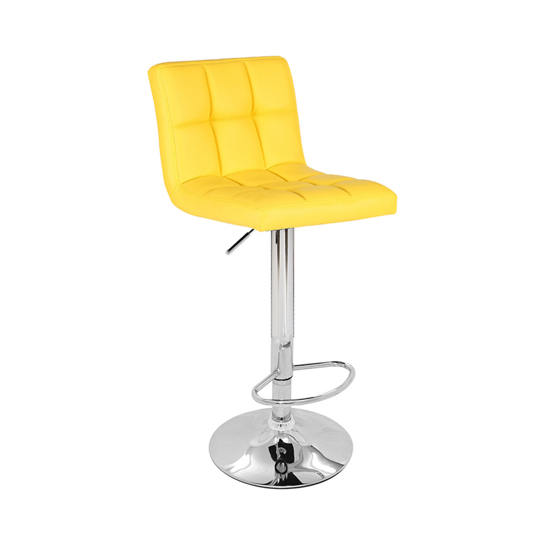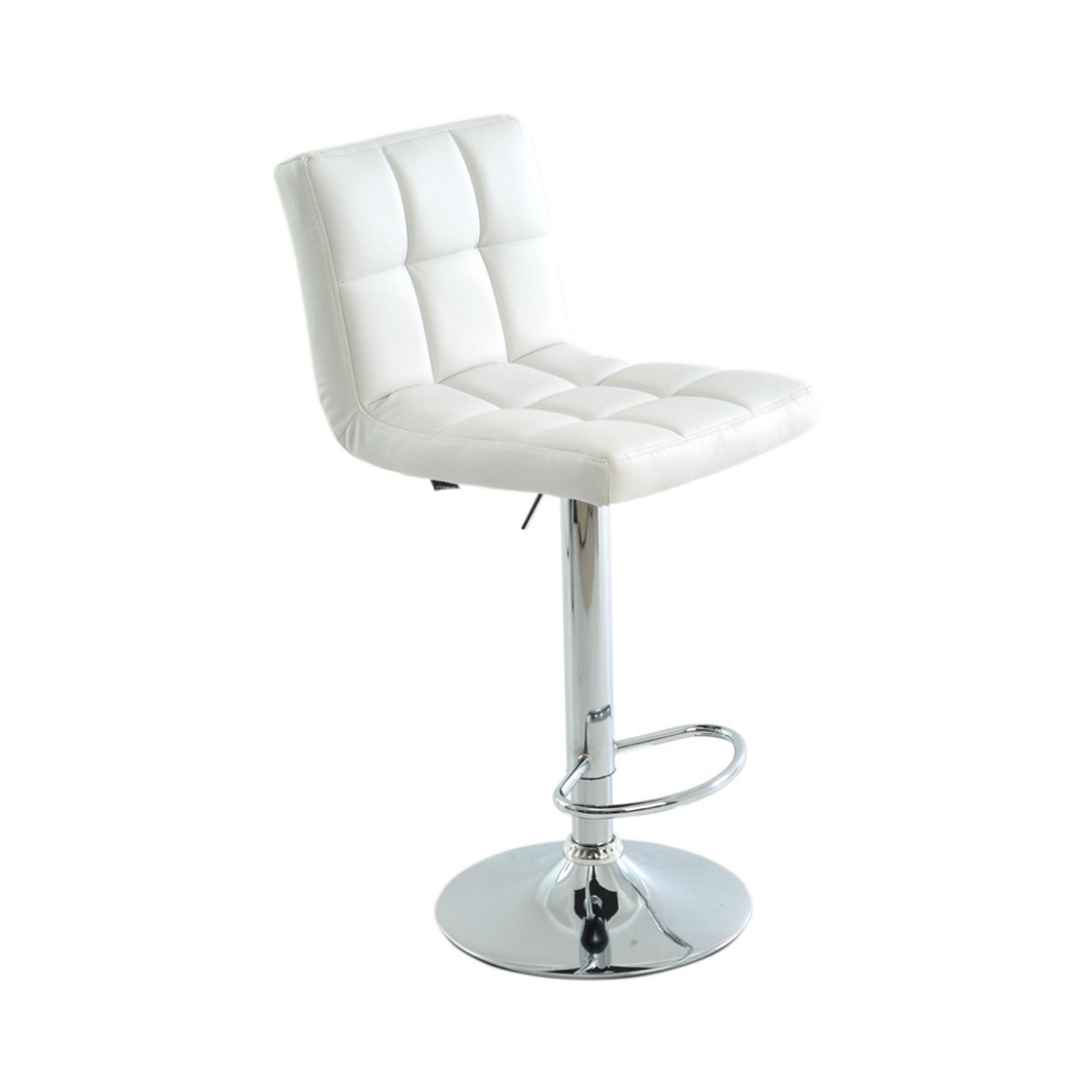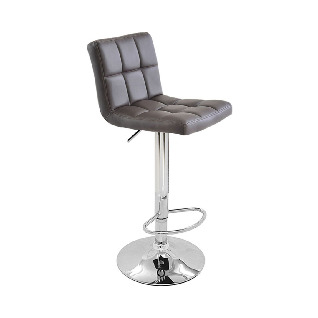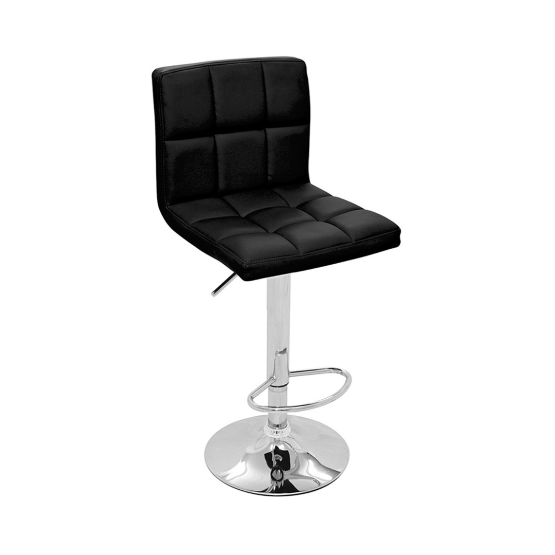 Banqueta giratória com assento e encosto em couro ecológico e base aço cromado, com ajuste de altura à gás.