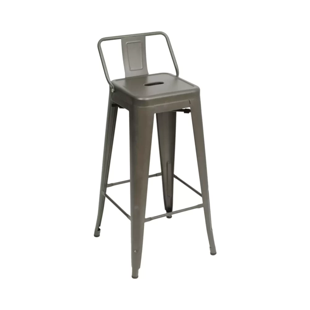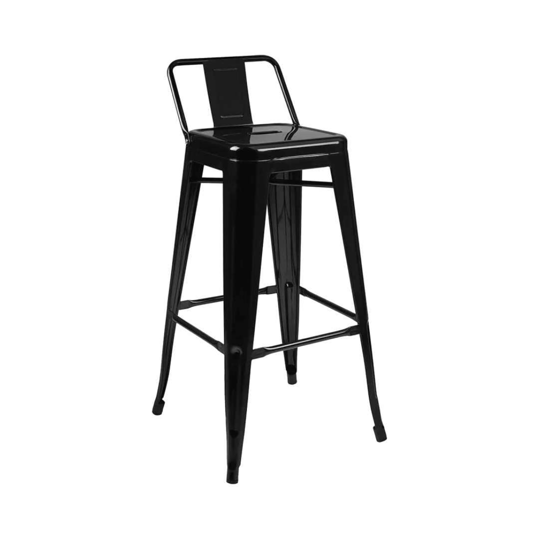 Banqueta fixa com encosto, feita em aço com pintura epoxi.