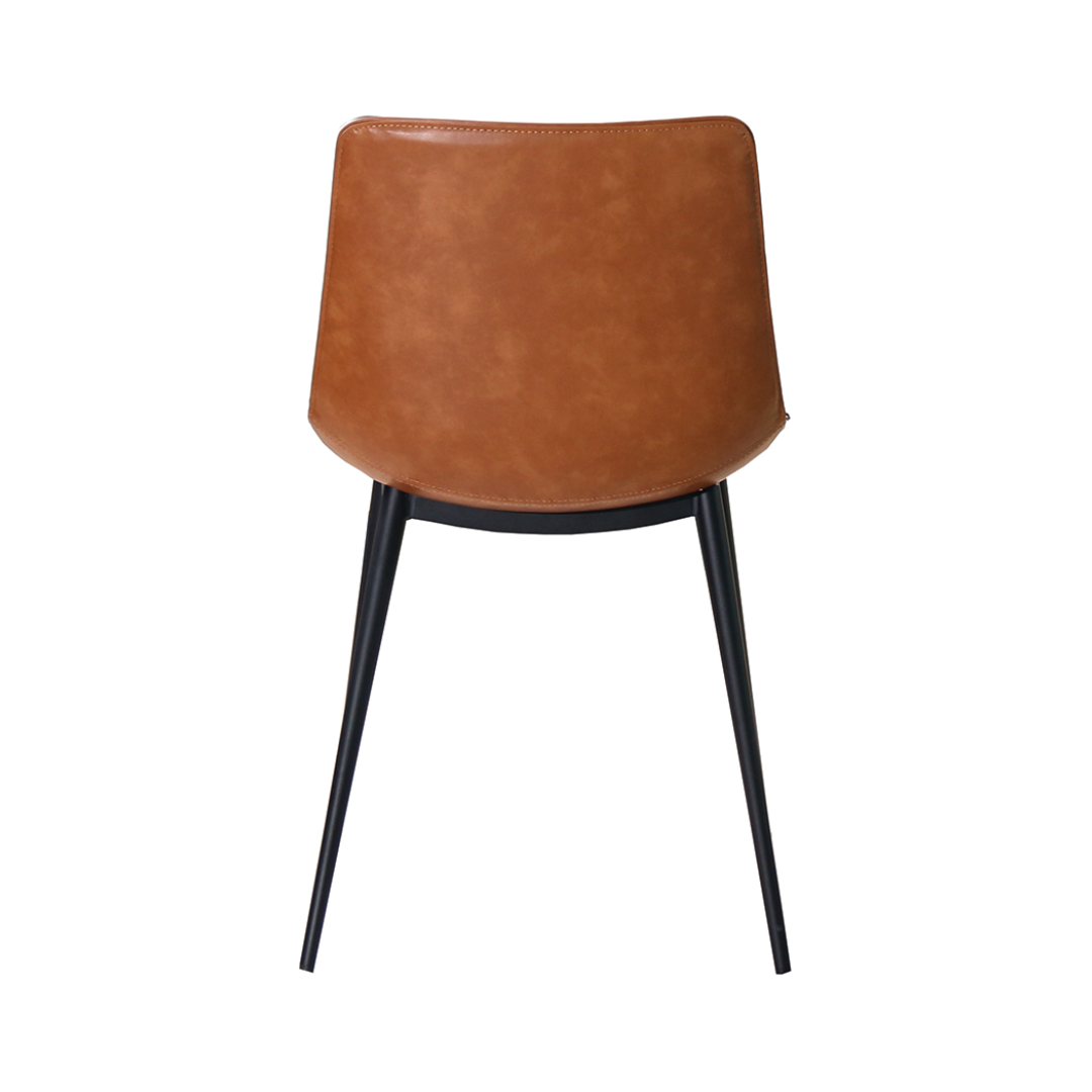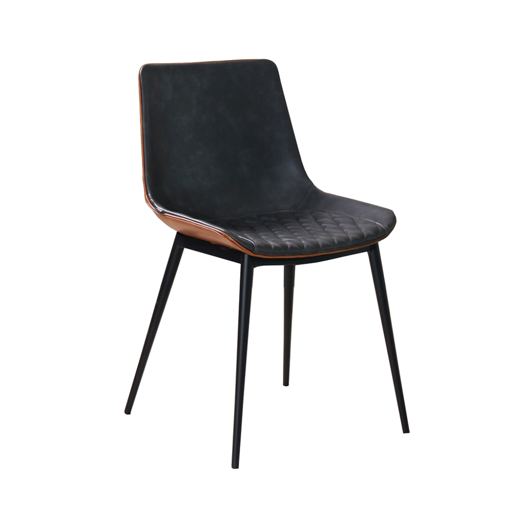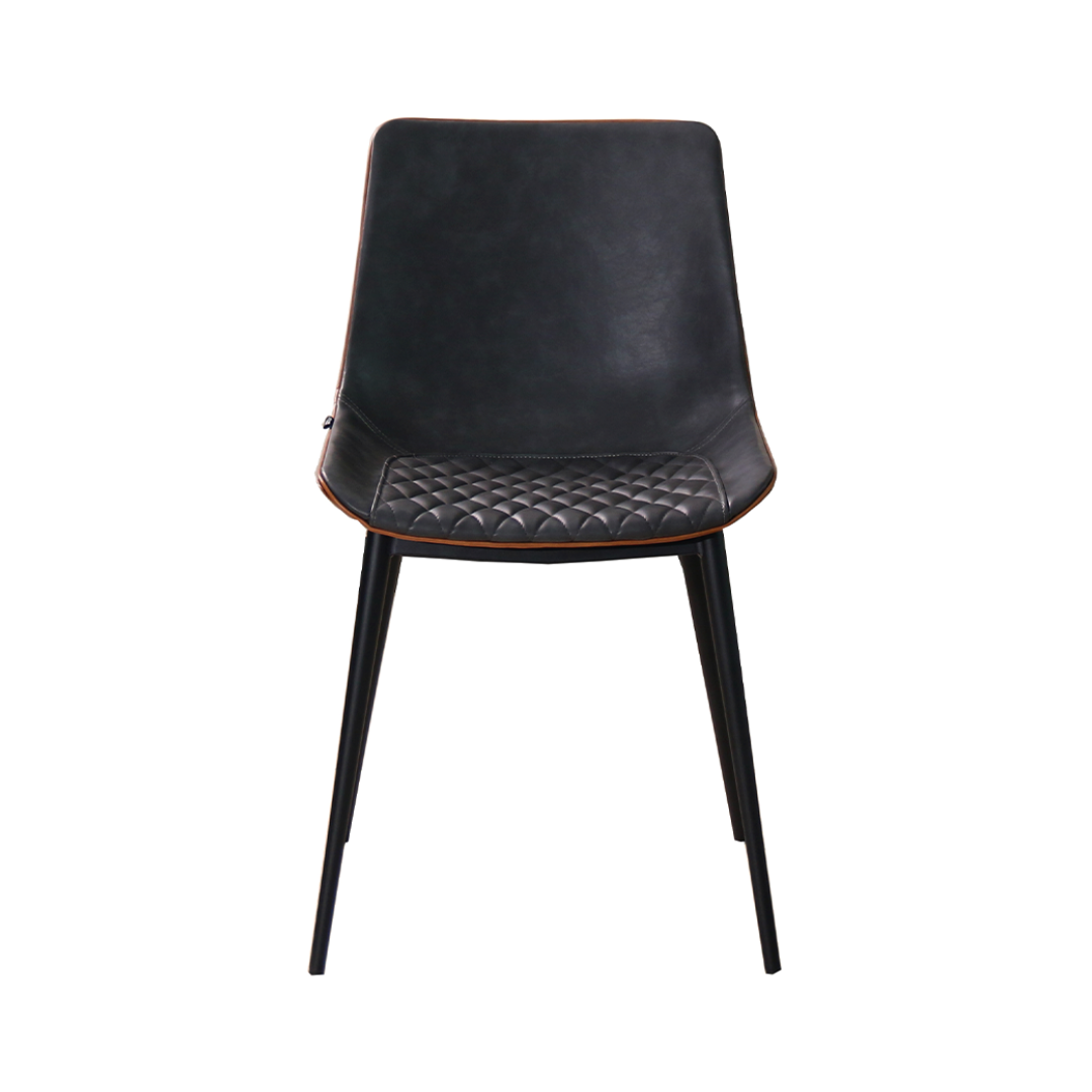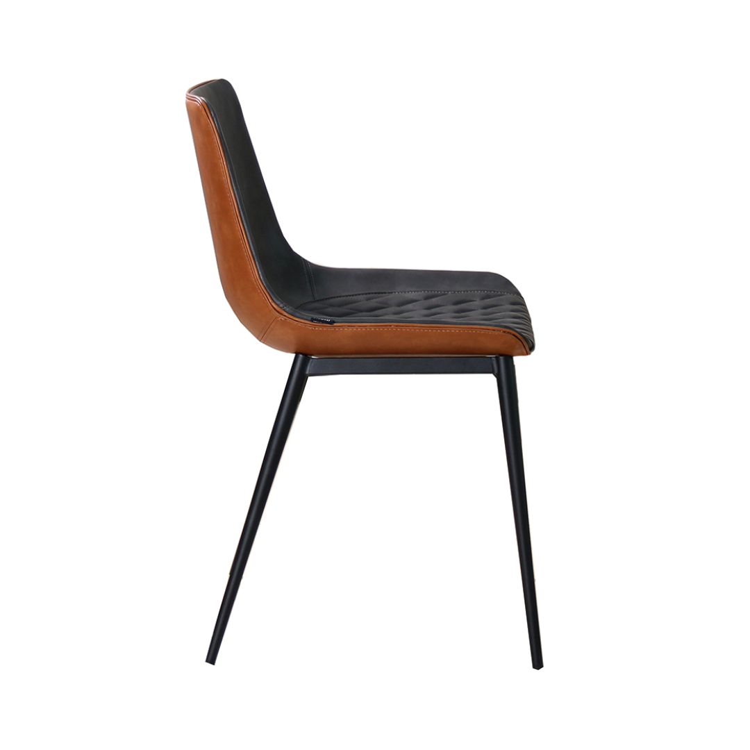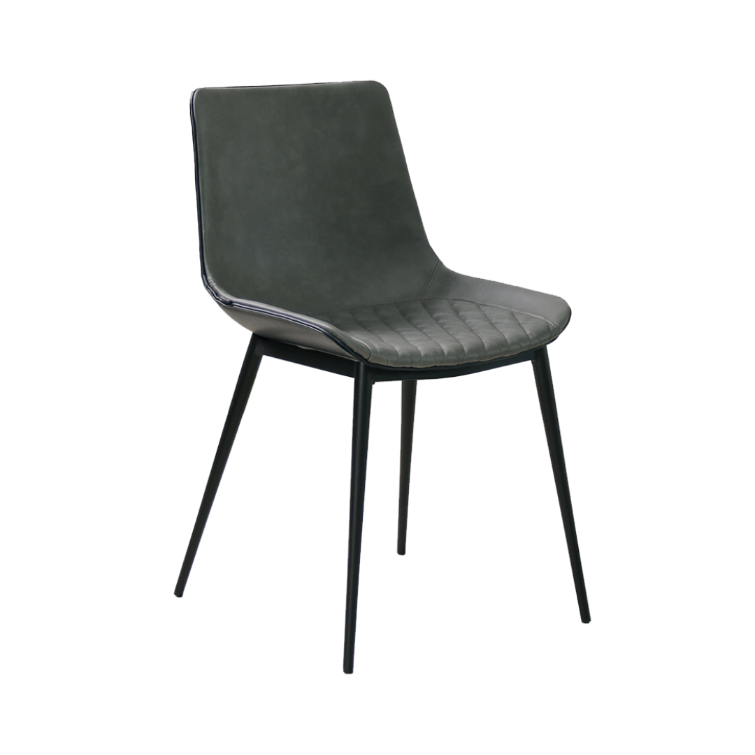 Cadeira revestida em couro ecológico com acabamento em matelassê no assento e base de aço.