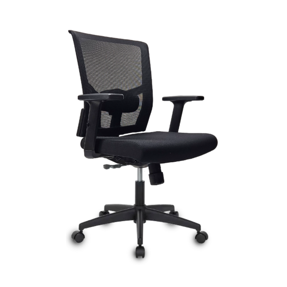 Cadeira diretor ergonômica com encosto em tela de poliéster e assento em espuma injetada.