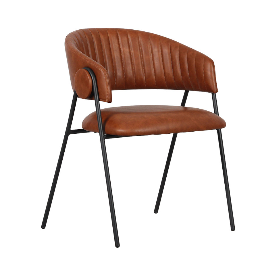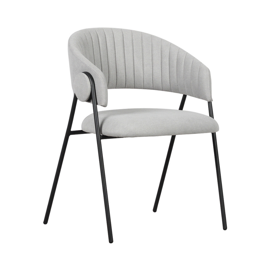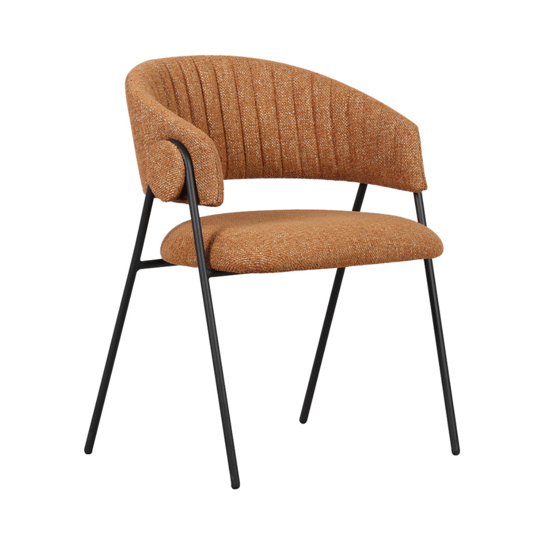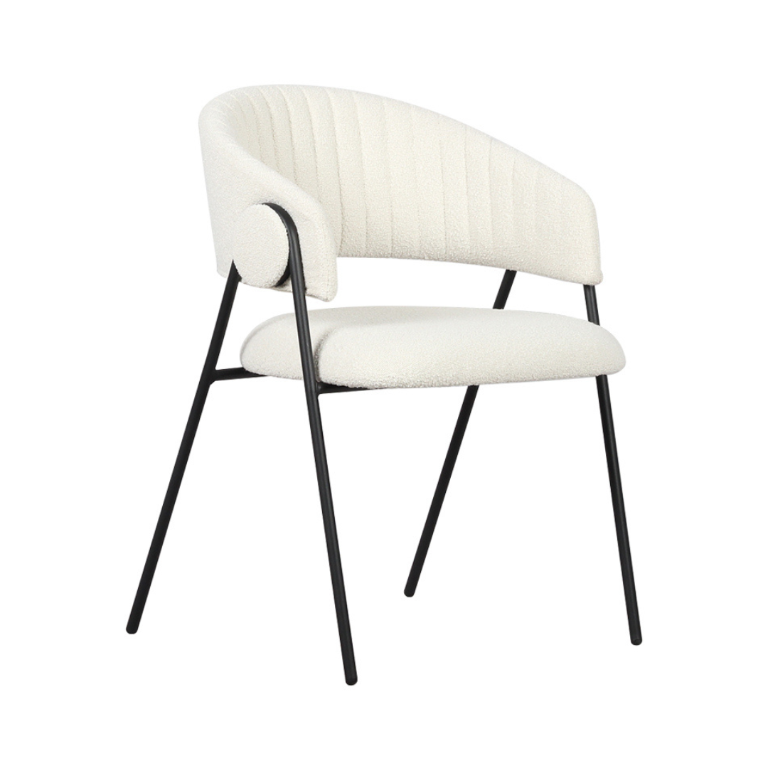 Cadeira com estrutura em aço pintado de preto e revestimento em bouclé, linho ou PU.