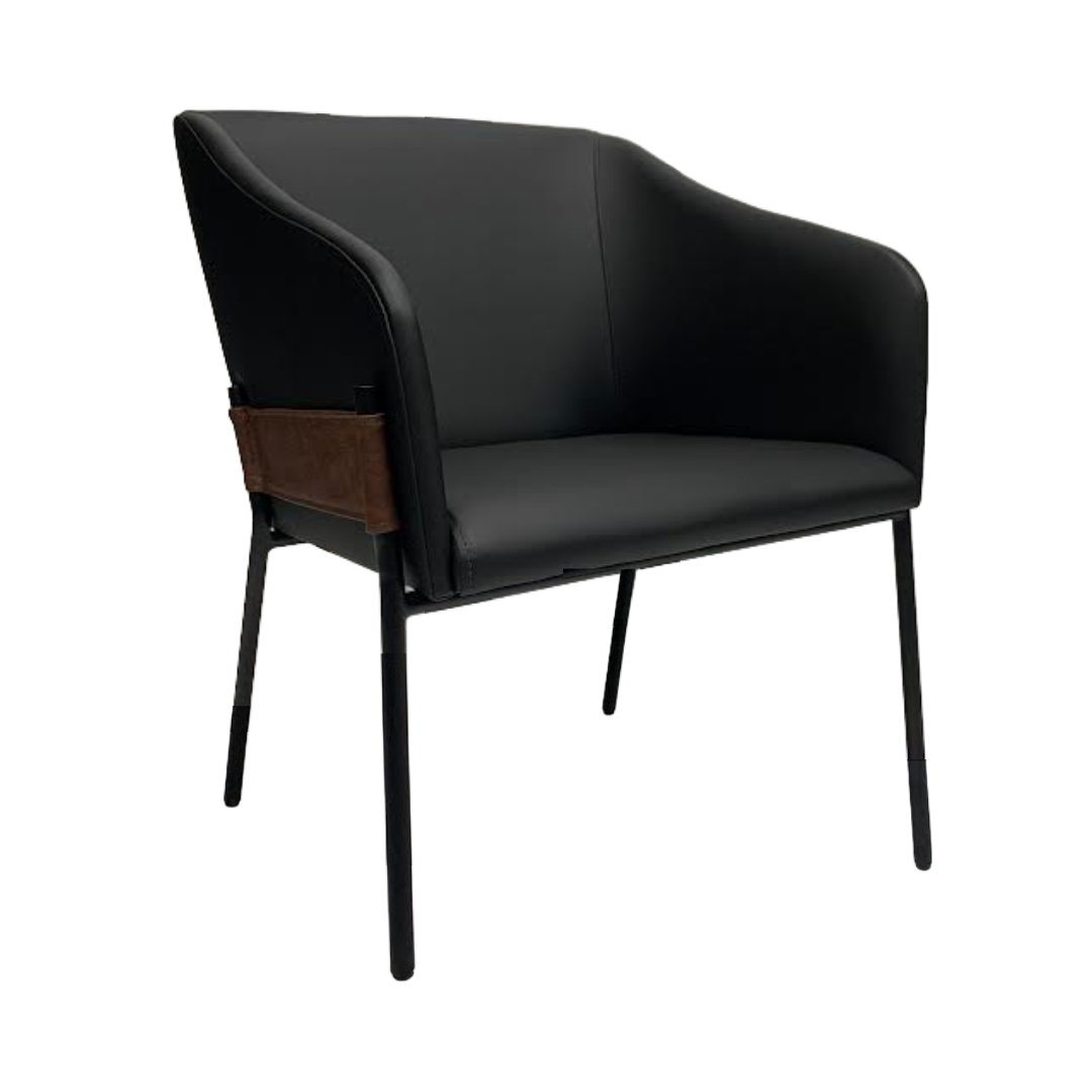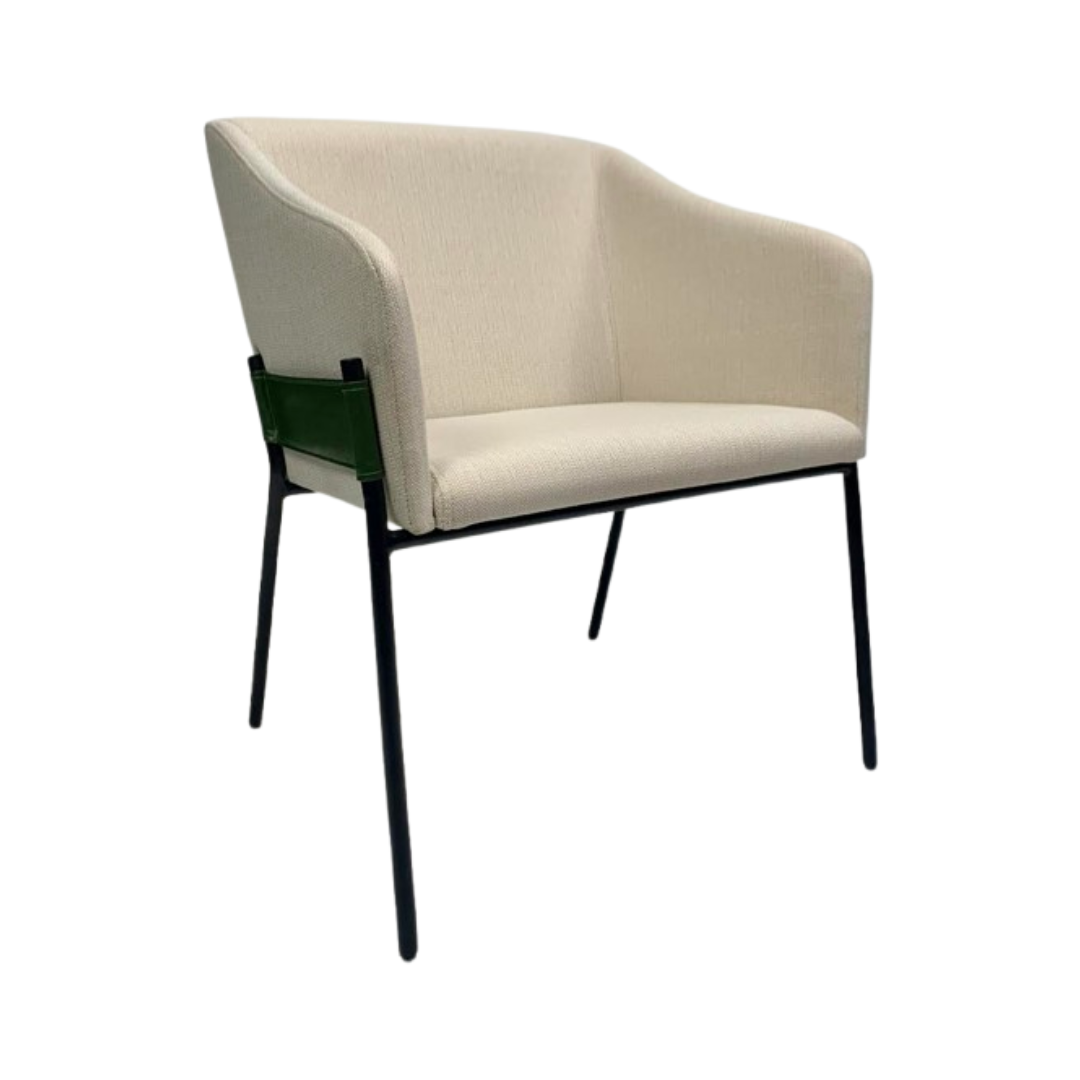 Poltrona fixa com diversas opções de revestimentos e base em aço pintado.