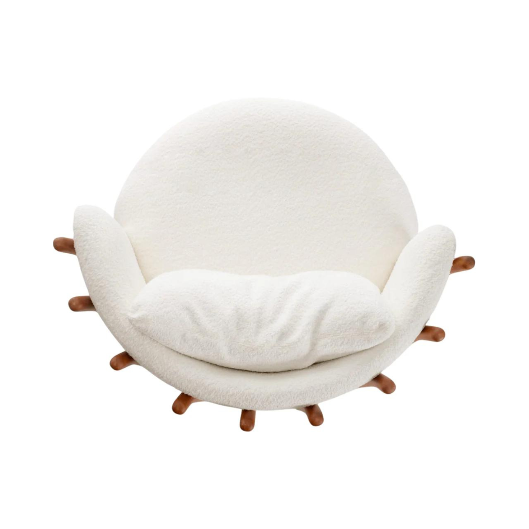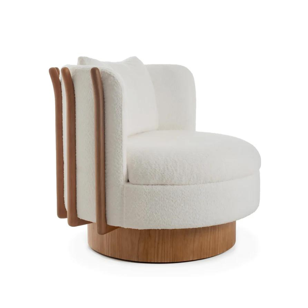 Poltrona fixa com diversas opções de revestimentos e estrutura em madeira.