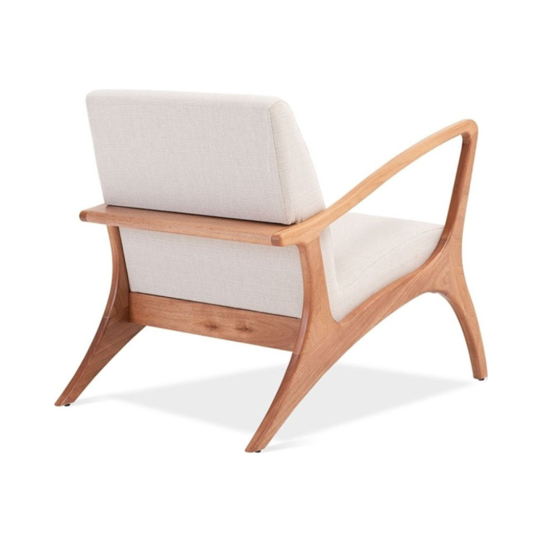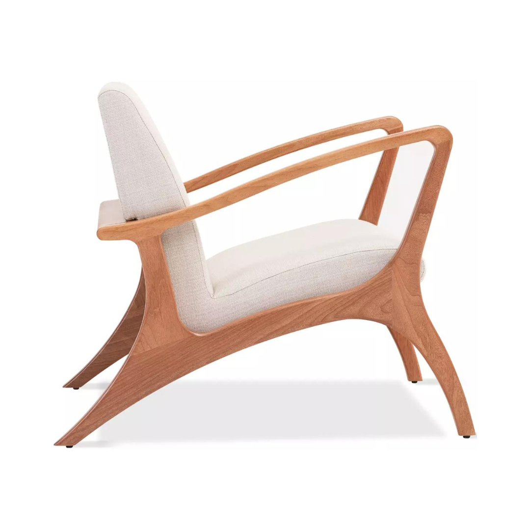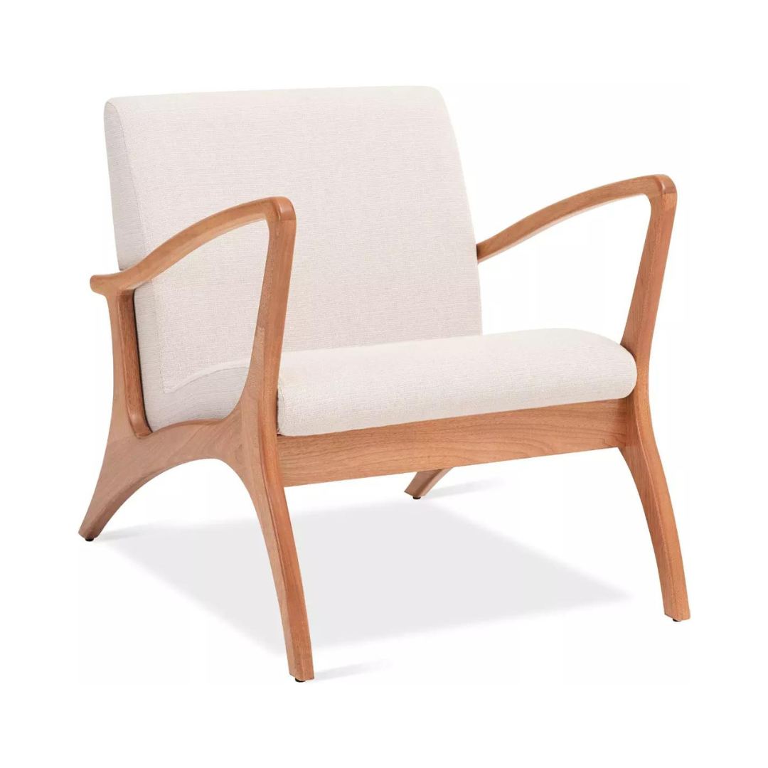 Poltrona fixa com diversas opções de revestimentos e estrutura em madeira.